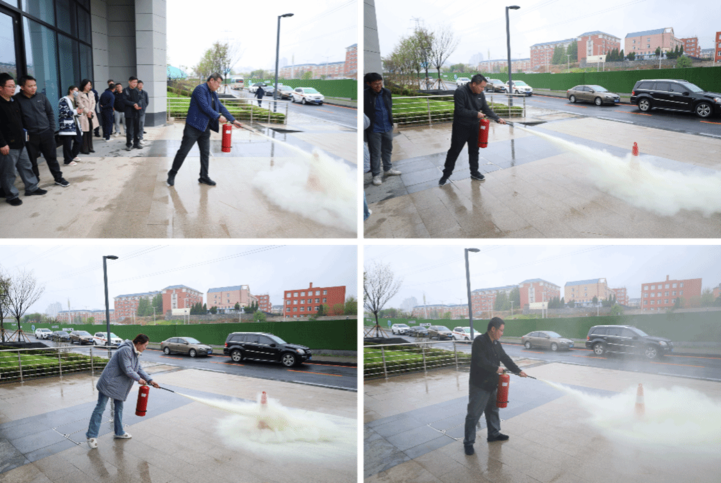 在中心入口处,葛衍非组织灭火器使用教学,以“一提、二拔、三握、四压”八字口诀为纲,讲解二氧化碳灭火器的适用场景、操作要点及注意事项。通过现场观摩学习与实际操作,大家切实掌握了灭火基本要领,增强了应对火灾的信心和能力。